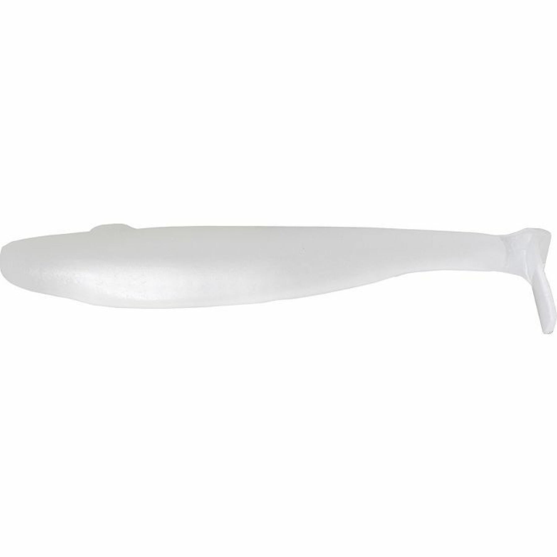 Cuerpo grueso y denso con bastante peso. Con lo que consigue grandes distancias de lance con comodidad y sin peso añadido. La consistencia del cuerpo trasmite un movimiento más seco y corto, emitiendo vibraciones cortas y repetitivas, atrayente para el black bass. Un swimbait blando de gran tamaño y calidad